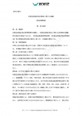 日本語翻訳データ販売開始 2020年11月 新中国化粧品監督管理条例に基づき 中国 Nmpa局発表の化粧品申請に関する7つの実務規定の内 2規定について修正された意見募集第2稿の日本語翻訳を販売開始 株式会社ワールドワイド アイピー コンサルティングジャパン