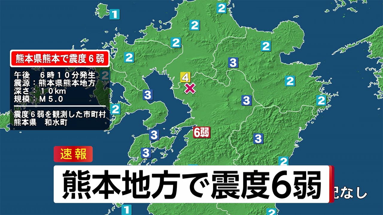 熊本県熊本で震度6弱の地震 津波の心配なし 1月3日午後6時10分 Fnn Jpプライムオンライン ニュートピ Twitterで話題の ニュースをお届け