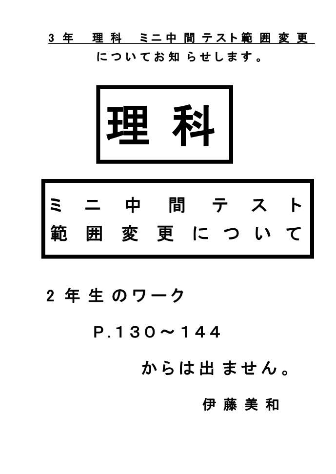 国分寺一中ニュース 3年生のみなさんへ 理科ミニ中間範囲変更について
