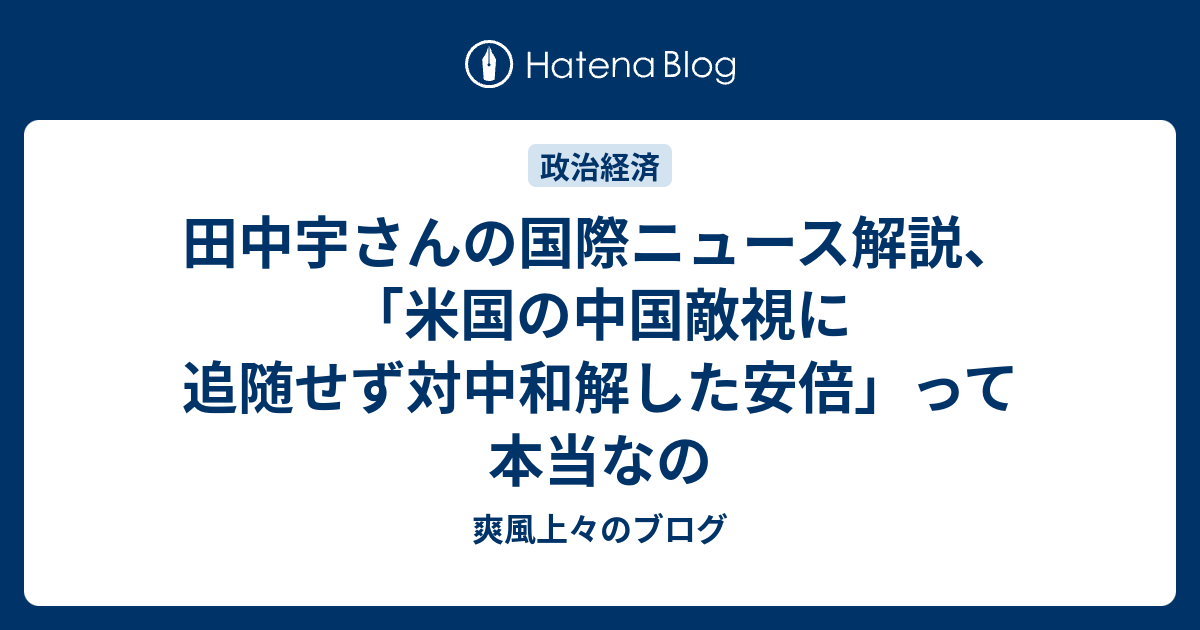 田中宇さんの国際ニュース解説 米国の中国敵視に追随せず対中和解した安倍 って本当なの 爽風上々のブログ