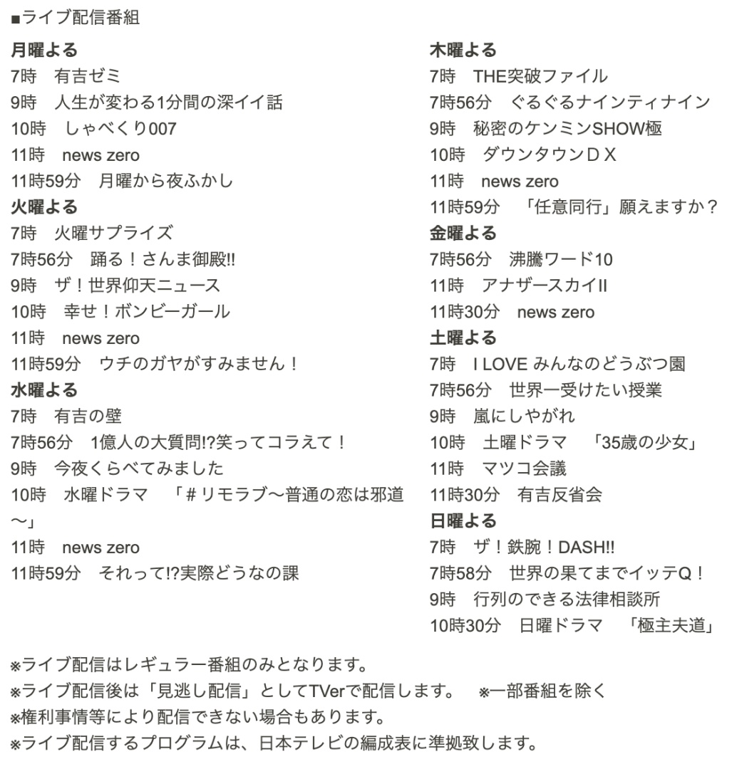 日本テレビ テレビ番組をtverで同時配信 10月から無料で Engadget 日本版