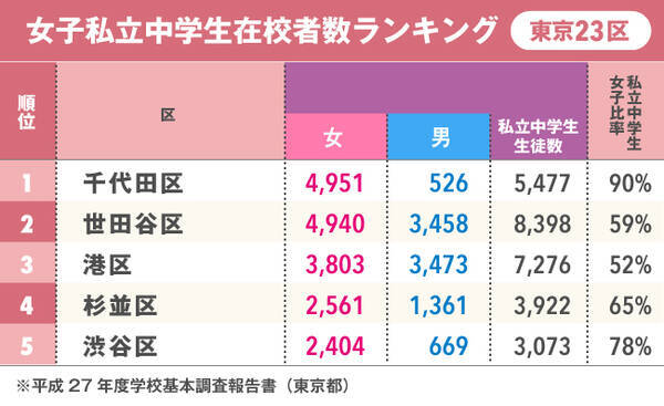 東京23区私立女子中学生数ランキング 1位は意外なあの区だった 2017年9月12日 エキサイトニュース