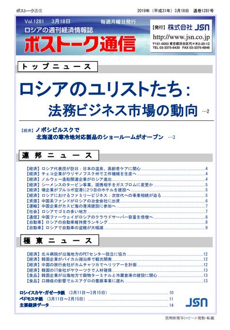 Jsn 週刊ボストーク通信1281号 3 18発行 の巻頭記事は ロシアのユリストたち 法務ビジネス市場の動向 Facebook